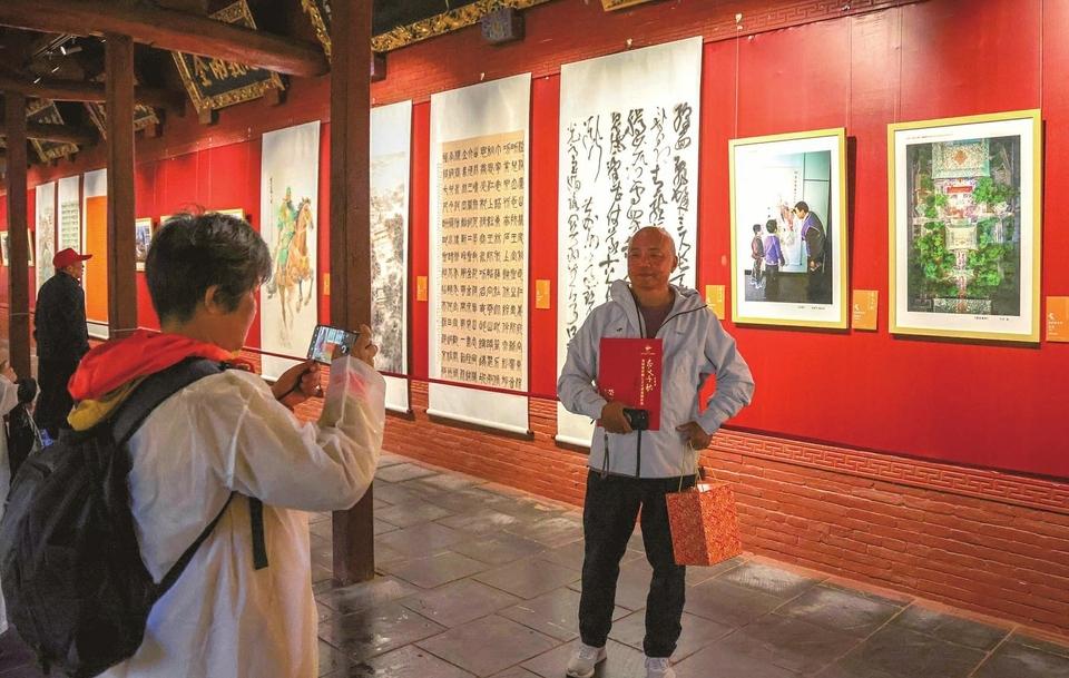 走出剧场,2025年“忠义千秋”海峡两岸关公文化书画摄影展同样引人入胜。此次展览共收到海峡两岸2578件投稿作品,涵盖书法、国画、摄影三大门类。步入展厅,翰墨飘香,一件件作品或笔走龙蛇、或丹青溢彩、或光影动人,字里行间、画面之中满含对关公文化的敬仰。海峡两岸关公文化书画展已连续举办7年,今年在延续传统的基础上首次融入摄影元素,借助镜头真实直观的叙事力量,生动呈现两岸同源的文化基因,进一步增强了两岸同胞的情感共鸣与文化认同。