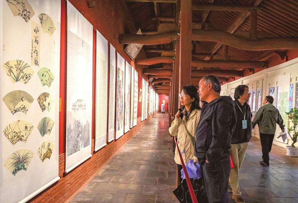 9月23日,在解州关帝祖庙东西长廊展厅举办的“忠义千秋”海峡两岸关公文化书画摄影展吸引了众多市民前来参观。
