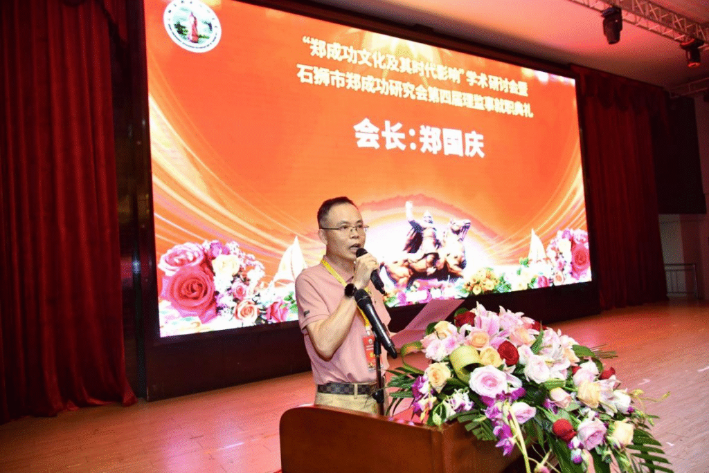 石狮市郑成功研究会现任会长郑国庆会长先生上台致词
